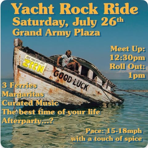 As far as I can tell, the NYC Bike Zeen guy doesn’t often host big group rides to share his fun routes, so I was happy to see that he had made a plan for a ride through Brooklyn, Governor’s Island, Manhattan, and Queens, that includes several ferry crossings. Given that some of these ferries cap the amount of bikes that can be brought on each trip, I’m not exactly sure how this will work. I’m sure he has a plan!