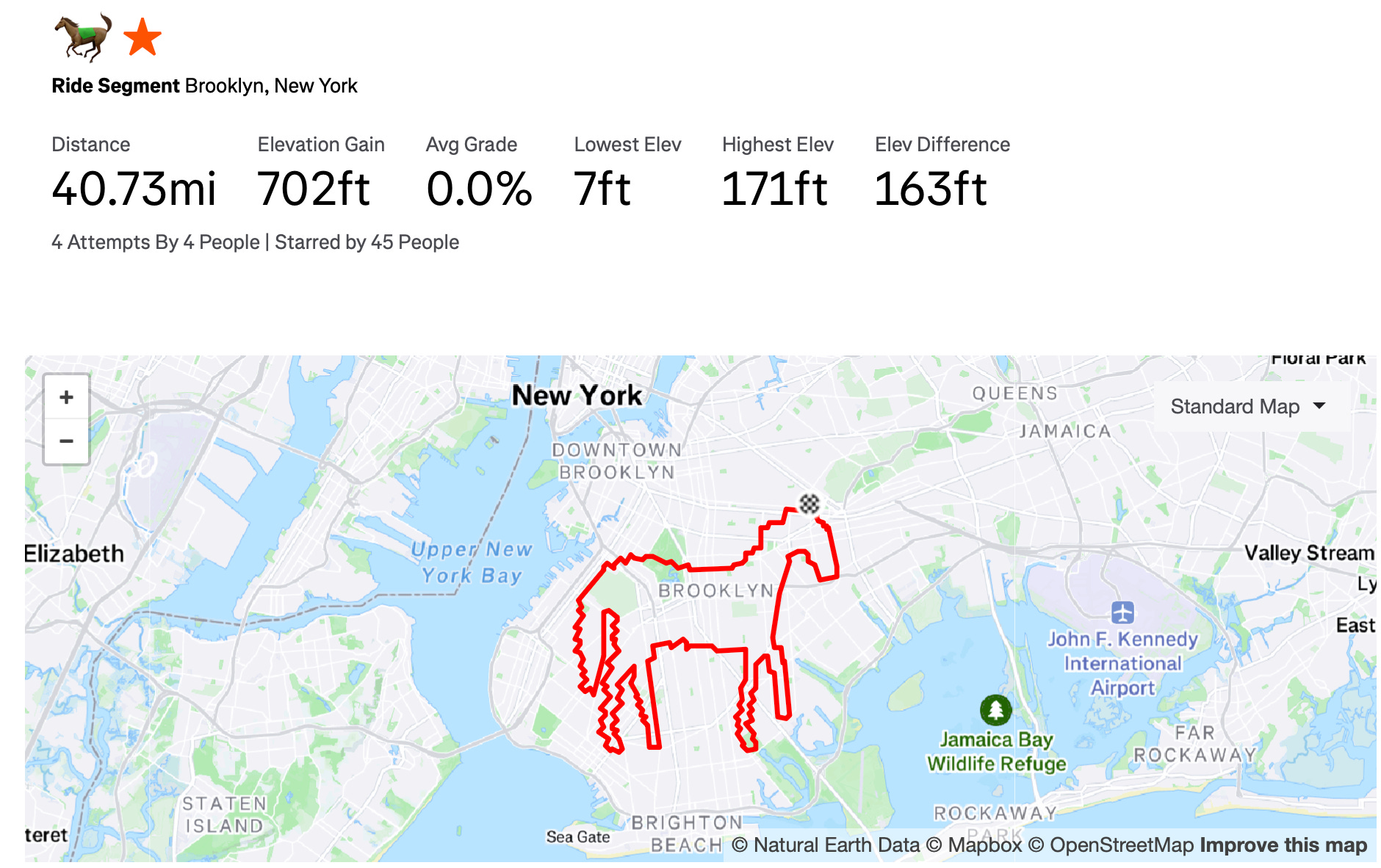 I got to meet NYC Bike Zeen while waiting for the Bike Plant alley cat to start last April. He’s a very very nice guy, who is also a freaky fast cyclist devoted to extremely weird and fun routes. Case in point: he made this one that looks like a horse.
