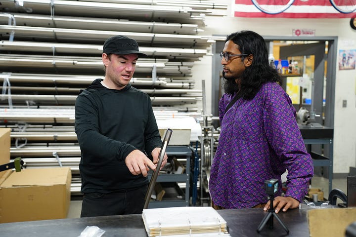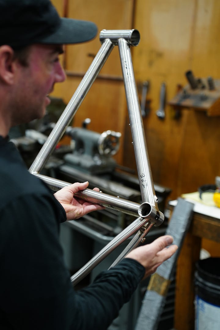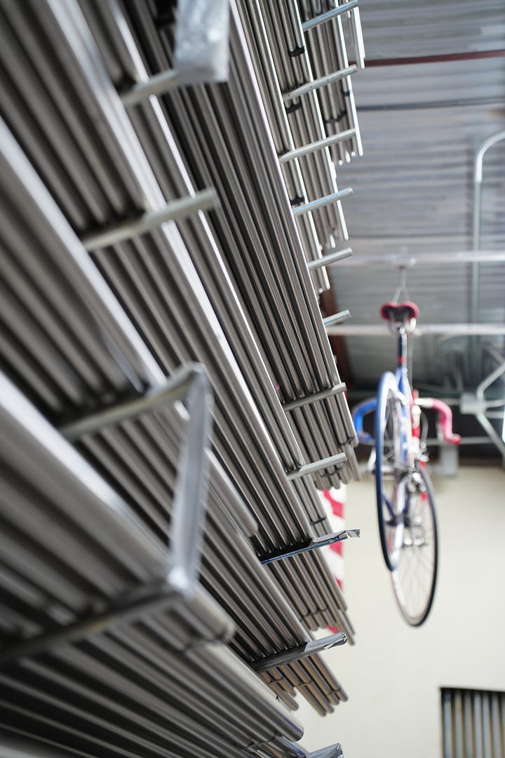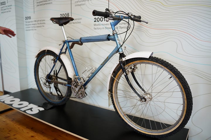 The company offers a Trade Up program, which allows people to get credit for any existing, ridable Moots frame. In part because of this, the factory is filled with existing, ridable Moots frames from years past. I loved seeing a steel mountain bike from the 80s that had fenders originally intended for a motorcycle hacked on, but also a bike a student had used for a project at the Colorado School of Mines. Apparently, by the time of my arrival, a bunch of others had been picked up by a local who maintains what might charitably be described as a museum of the area’s relationship to outdoor recreation. You can see the many that remain for yourself, the company does free factory tours every Monday and Friday.