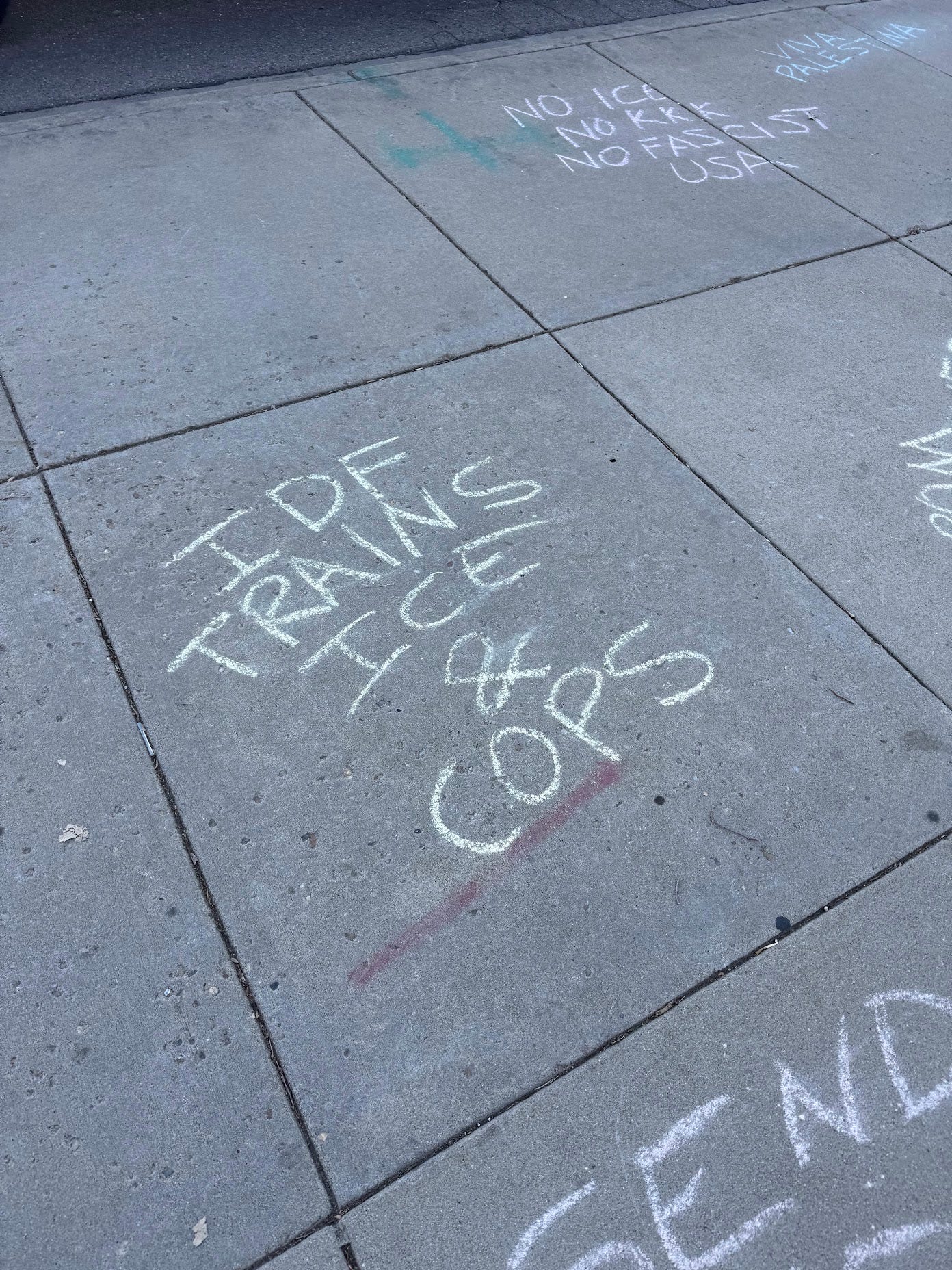 I bring this up because I honestly can’t stop thinking about it, but also because I wasn’t the only one. ICE came up in a bunch of my casual conversations throughout the week. And there was plenty of anti-ICE graffiti, chalking, and stickers on sidewalks, the walls under bike path bridges, and stop signs.